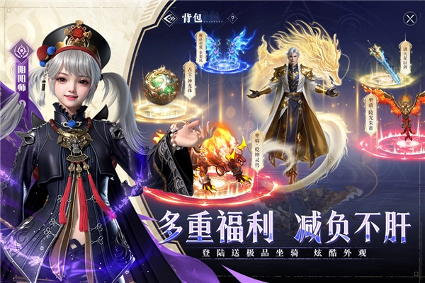 海量外观随心切换!奇幻、魔幻、科幻机甲等风格时装任你搭配。登录即送珍稀坐骑"地狱炎龙"、"冰霜飞骏",更有隐藏彩蛋福利等你发掘!