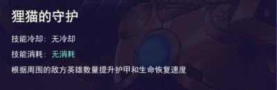 被动技能:狸猫的守护技能无CD时间无消耗。