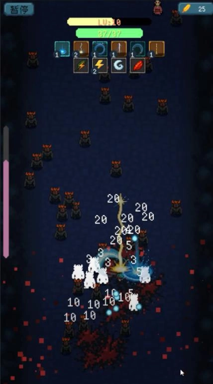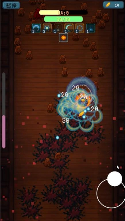 单机肉鸽游戏,战斗相对简单,攻击是自动的,只需单手指控制摇杆走位即可。碰到怪不会造成伤害,只有被攻击到才会受伤,有一定走位技巧。没做新手引导,功能十分简单,有一点游戏经验就可以很理解,上手不难。