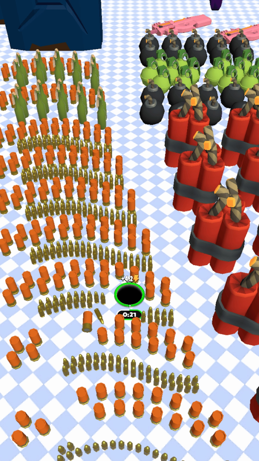 2.动态成长系统:通过售卖吞噬所得商品获得金币,用于强化黑洞的吸引力、范围或速度,逐步提升吞噬效率。