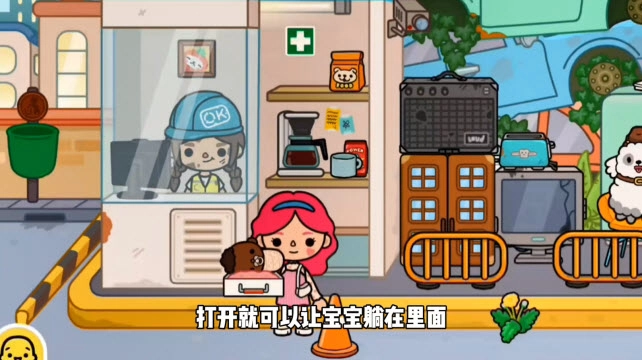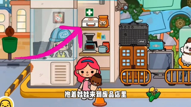 2、抱着娃娃来到废品店,上面有个医疗箱,打开就能让娃娃躺在里面。