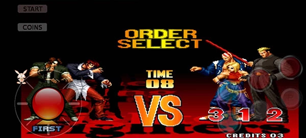 1.对决模式还原了经典街机的格斗场景,玩家各自操控3名角色依次出战,进行实时的格斗对抗。