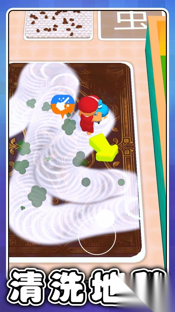 2、关卡难度呈递进式,初期只需处理简单污渍,后期则要应对多种顽固污渍和复杂地毯材质。