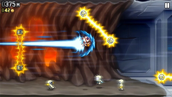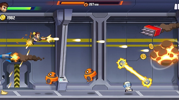 疯狂喷气机中文版是专门为中文用户量身打造的。这款游戏巧妙融合了跑酷与射击的元素,玩家将化身为一名背着喷气背包的特工,在各类极具挑战的关卡里穿梭冒险,既要收集金币、躲避障碍,又要击败敌人,尽情体验一场扣人心弦的空中旅程。