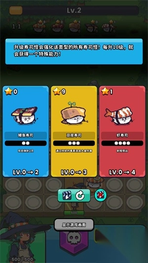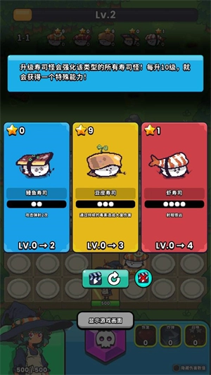 5、击败敌人可以获得经验值,每次升级可以强化一个寿司来提升能力。