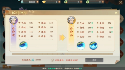 2、伙伴完成升阶后,将具备更优质的属性成长能力与更多的技能数量