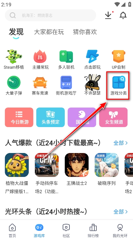 1、首先在本站完成软件安装,随后进入“游戏库”板块。