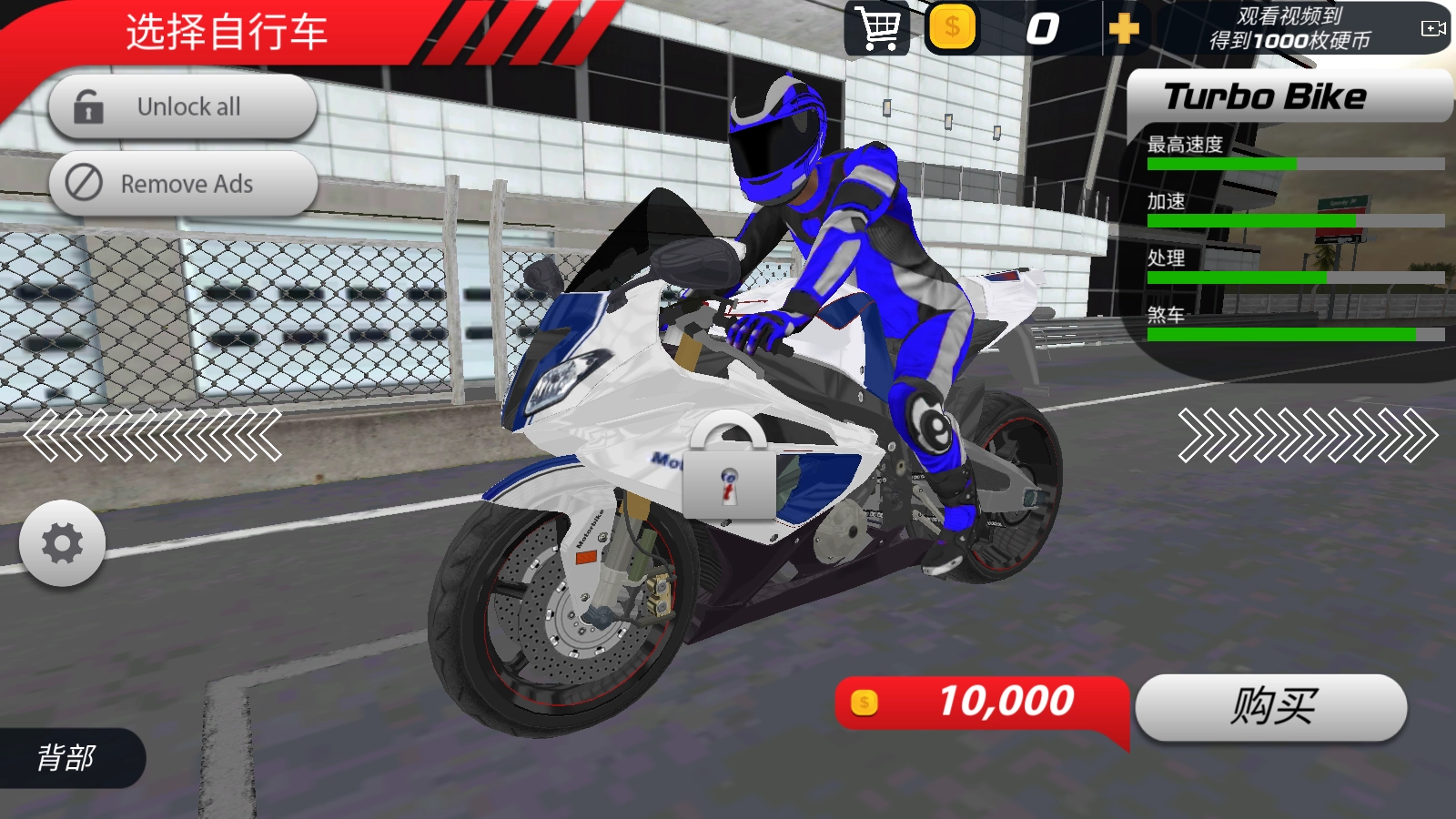1、游戏中的摩托车款式有很多,玩家可以灵活选择,然后就能进入比赛之中,每次竞技特别有趣。