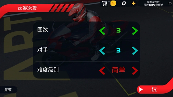 2、然后需要选择一个赛道,设置一下难度,就能开始竞技。