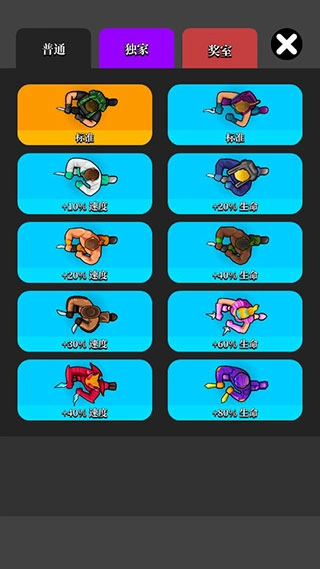 4、不同人物有不同的属性,根据角色强度不同,分为普通,独家以及奖室,需要特殊条件解锁