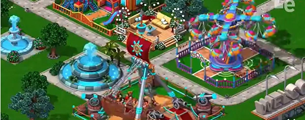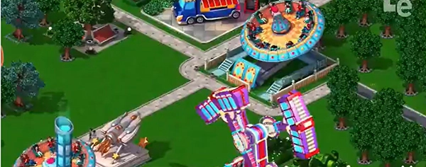 作为经典之作,画质方面相比而言只能算是一般,我们依然采用俯视的视觉效果来体验此作,3D的设计中,游乐场间的每个设施无论从造型还是色彩上来看,都搭配的非常完美,色彩斑斓的相互融合,鲜花绿化的配套设施,将游乐场浓浓的气氛烘托的淋漓尽致。