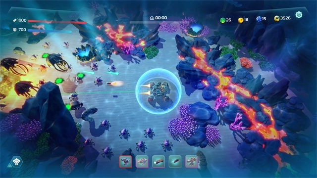 《海洋守护者穹顶生存》是一款趣味十足的Rougelike冒险佳作。在游戏里,玩家要操控机甲驶向深海世界探寻矿产资源。这片水域中,不仅藏有诸多珍贵宝藏,还潜伏着不少强大怪物,玩家得谨慎应对。通过游戏获取的收益,能够用来升级机甲设施,购置更多武器。游戏以卡通画面风格,为我们呈现出海底的奇幻天地!