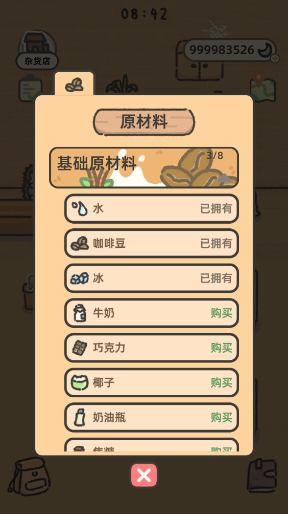 还原了饮品制作的过程,玩家可使用各种原材料进行搭配尝试,组合成丰富多样的饮料,如将牛奶和咖啡豆混合制成拿铁。