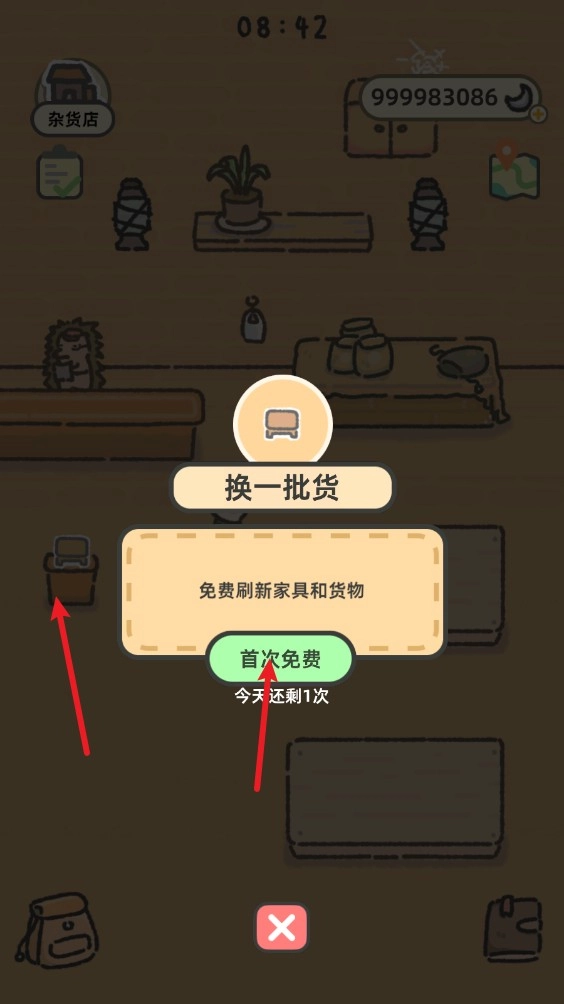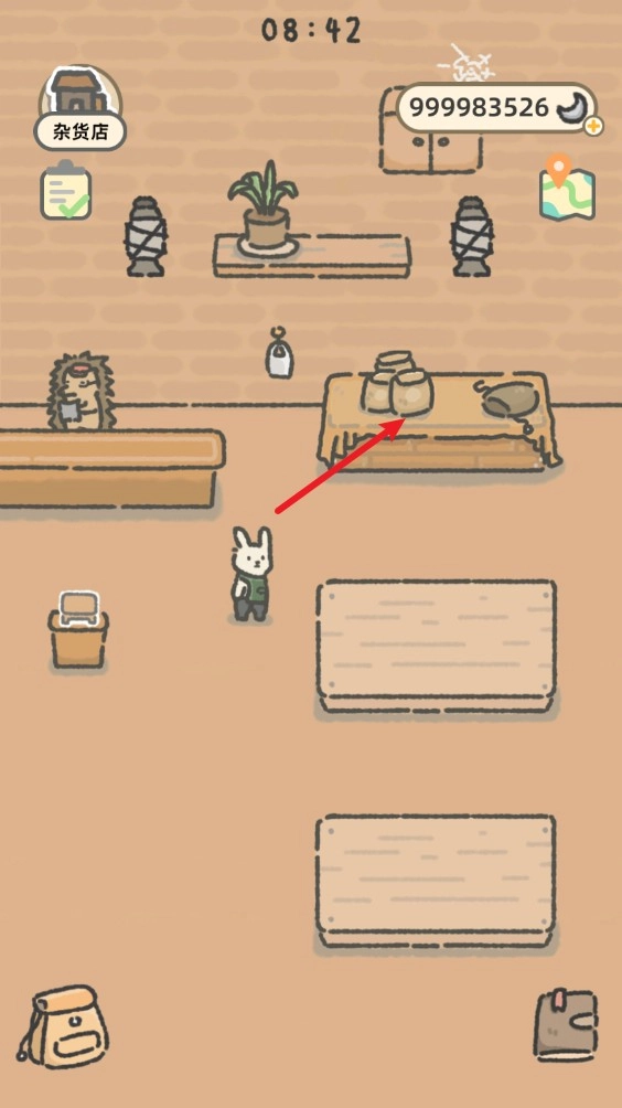 2、然后点击这里的桌子就可以打开杂货店了;