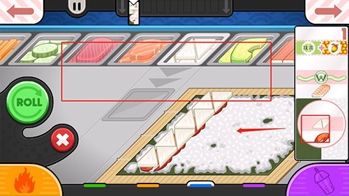 7、记录好顾客的喜好和点单需求就可以切换到烹饪台开始准备制作寿司啦~