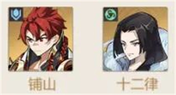 搭配思路: 主角携带霜华倾落和十二律组成双群控,可以冻结敌方行动。铺山在前排阻挡伤害的同时,还可为敌方添加减益效果,辅助十二律冰冻控制。配合孙兵或朱珠,利用他们第一回合的减防增加输出并为十二律提供造成控制的减益效果。