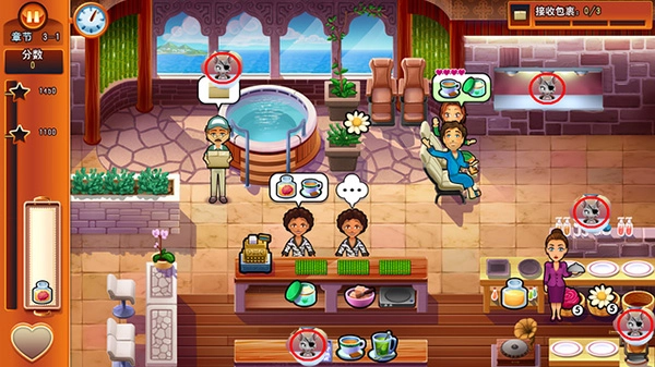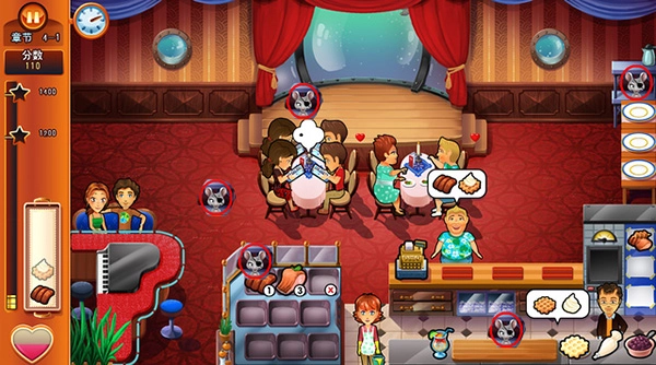 4、顾客拿到美食会给出金币,你需要收集起来否者新的顾客将无法用这个位子。