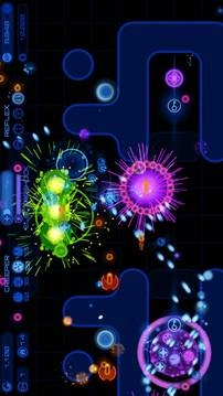 3.敌人种类:敌人种类繁多,各具不同的属性和能力,如紫色球体会自动爆炸并射出弹幕,黑色球体则需通过炸弹解决。