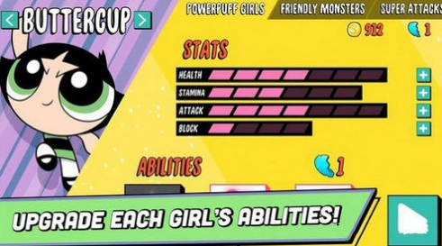 升级飞天小女警的超能力,使她们更快、更强、更厉害,能够来对抗更加多的怪兽们来战斗。