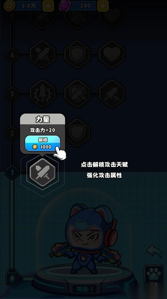 3. 解锁角色的天赋和属性,随着游戏的进度不断的提升等级,增强战斗力。