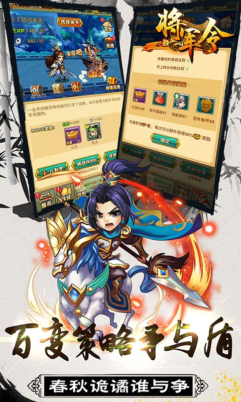 《将军令》的游戏画面采用“立体卡牌”的呈现方式。武将角色形象均由金牌团队画师精心打造,完美还原三国角色设定。游戏玩法打破了传统卡牌的人物羁绊模式,凭借华丽的角色技能与独特的武器技能,搭配流畅的连击特效,让玩家体验到“啪啪啪”的破敌爽感,简直爽到炸裂!