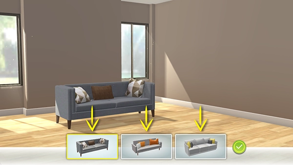 3、选择你想要更换的新款沙发,然后点击“√”确认替换;