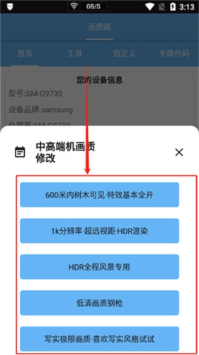 高性能画质优化软件,免root解锁吃鸡画质。画质阁120帧安卓和平精英可以选择不同的配置来获得不同的优化效果,超极限、高清、平衡、流畅.等,选择专属于你手机的优化方案吧!
