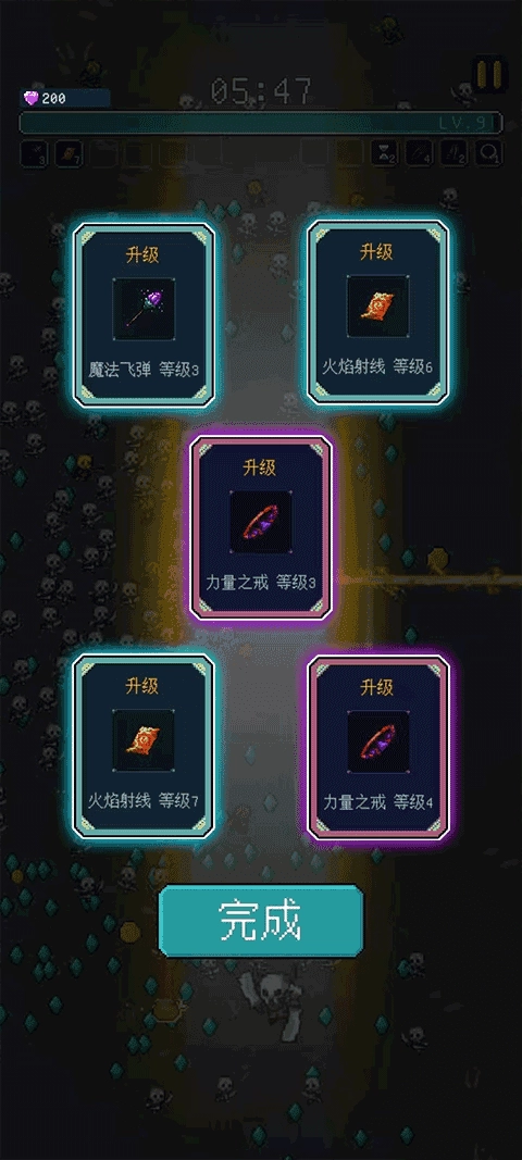 3、在游戏进程中,装备升级是必不可少的。每次弹窗出现时,务必仔细选择需要提升的技能效果,这样才能更好地发挥出流派的优势。
