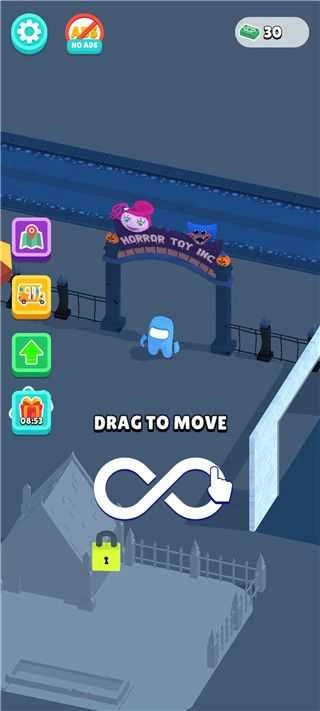 1、启动恐怖动物园游戏后,可通过滑动屏幕操控角色移动,探索这个弥漫着奇诡氛围的世界;