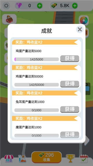 3、点击下方的第三个按钮,即可收集当前生产的鸡蛋所对应的收益。