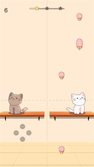 1、简单有趣的玩法:玩家只需操作两只猫咪左右移动,收集冰淇淋进行评分,让人轻松上手,乐趣无穷。