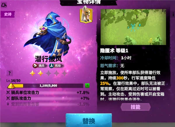 例如骑兵推荐携带潜行披风,隐身效果可持续5分钟,适合扫田、偷袭等战术行为。普通玩家对抗远程大佬也有一战之力。