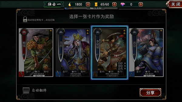 6、游戏战斗胜利后我们还可以选择一张卡牌加入我们的卡册中。