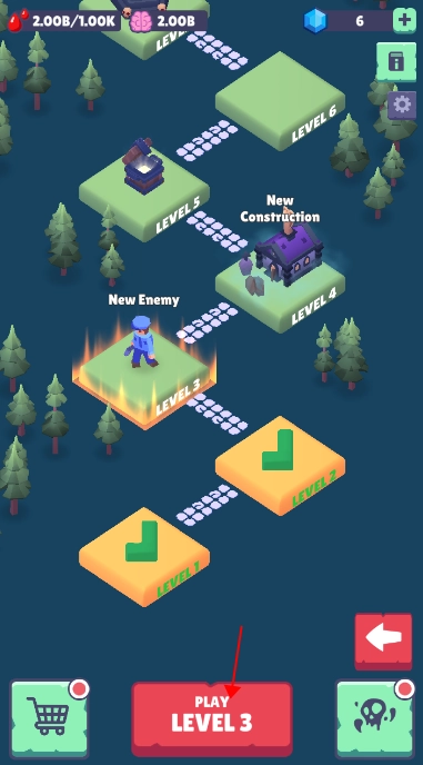 1、游戏启动后,选择关卡,点击屏幕下方的红色按钮就能开启冒险之旅。