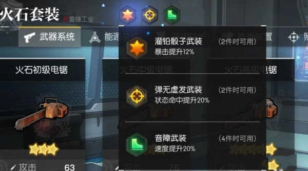 每件装备都随机附带一种套装类型,当集齐一定数量的相同套装时,会激活紫色框体中的套装效果,例如:
