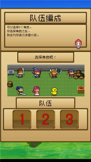 1、第一次进入游戏后,跟着一段引导对话就能开始组建属于自己的冒险团队了。建议选择勇者、战士和魔法师这三大职业组合,他们不仅战斗力出色,还能在战斗里提供不错的防御支持。
