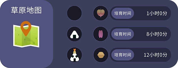 地图、零食(黑色图标表示无)、此组合带回的种子(为什么不标注名称!)、该种子的成长时间