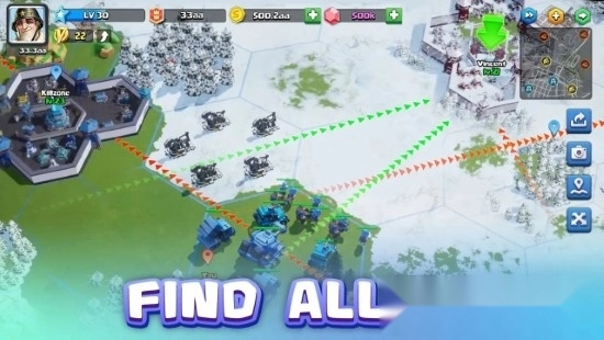 别忘了,它还是一款策略类游戏,你可以排兵布阵,随心所欲的调遣英雄指挥作战;您可以集结士兵攻打黑暗军团,也可以结交盟友抵御其他战区的指挥官,登顶全服榜单。