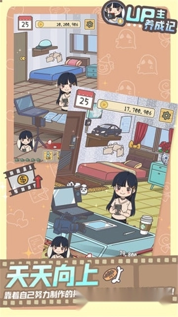 每次刷到网上那些做长短视频的UP主,我也总想着能像他们一样,成为镜头背后的创作者,把自己的想法分享给大家!要是还能靠作品赚大钱,当一个给自己打工的自由职业者就更棒了!由0.5工作室研发(B站知名UP主王狗Danny参与制作)、柠檬酱发行的养成游戏《UP主养成记》,正等着你来实现这份梦想!只要你有一颗乐于分享的心,只要你满是创作的热情,你也能成为可爱美丽、英俊潇洒、幽默风趣、高冷神秘或是猎奇古怪的UP主!在《UP主养成记》里,你可以模拟全职视频创作者的日常:找灵感、写脚本、拍素材、剪视频,还有上传视频时那份既紧张又期待的心情!要是今天想放松一下找找灵感,你还能出门逛逛,在超多随机事件里挖掘素材。等粉丝量上来了,你还能在社交平台和粉丝互动,加入MCN公司增加曝光,赚更多收入!所以,赶紧努力提升视频质量,涨粉涨播放量吧!