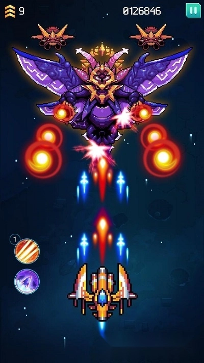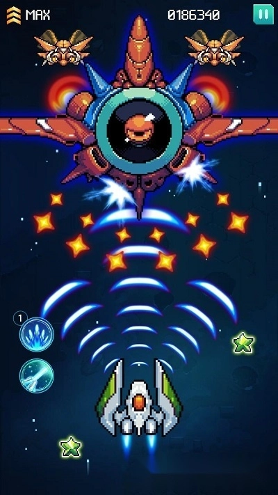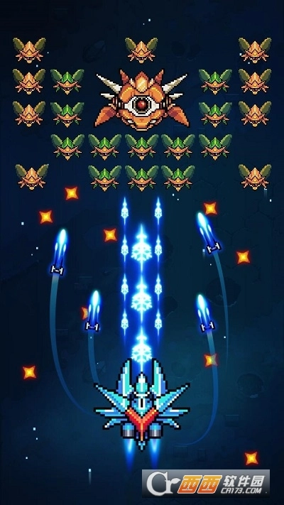 -使用硬币和宝石来升级或进化您的太空船,以对抗巨大的敌人和外星入侵者。
