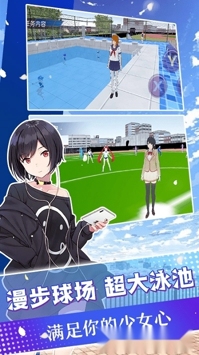 1、游戏画面精致清晰,高度还原了日本高中生活,背景为虚构世界日本樱花镇;
