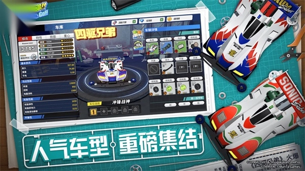 1.热门人气车型强势集结,精准还原动画里的每一款经典座驾,带你重温记忆中的四驱兄弟。只需轻点指尖,就能将这些爱车收入囊中,共同开启追逐冠军的热血之旅。