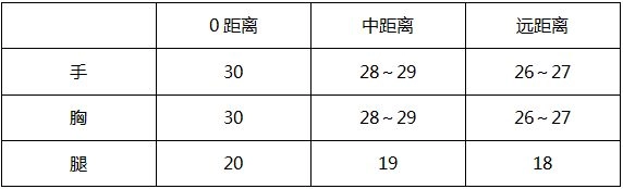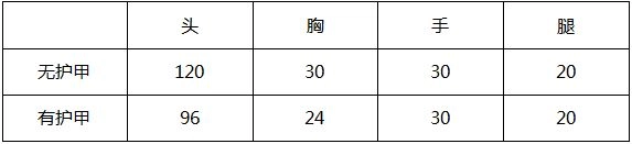 1、胸部伤害x4即为头部伤害,打中护甲的伤害须在此基础上另外x0.8 。
