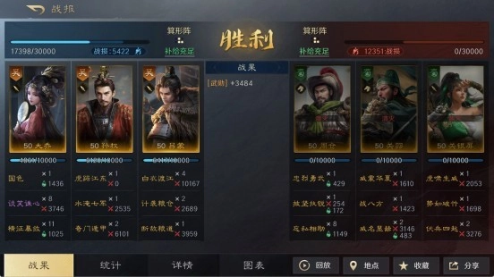 3.合理配置兵力,激发各武将潜能,增加战斗力,可挑战大量副本,获得各种武将等级资源,增加武将属性