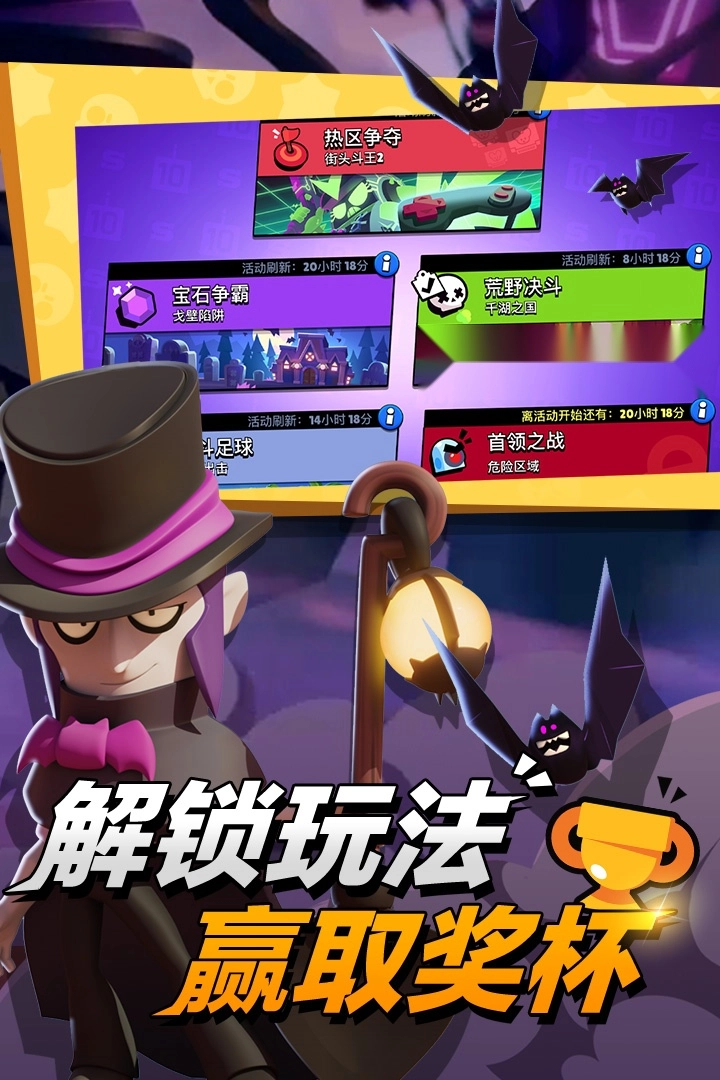 - 赏金猎人(3v3):击败敌人,获得赏金之星,同时提防对手反扑。获得最多赏金之星的队伍赢得比赛!