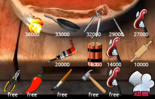 3、右下角很多工具可以任意使用,对牛排进行敲打、剪切等等,特别有意思。
