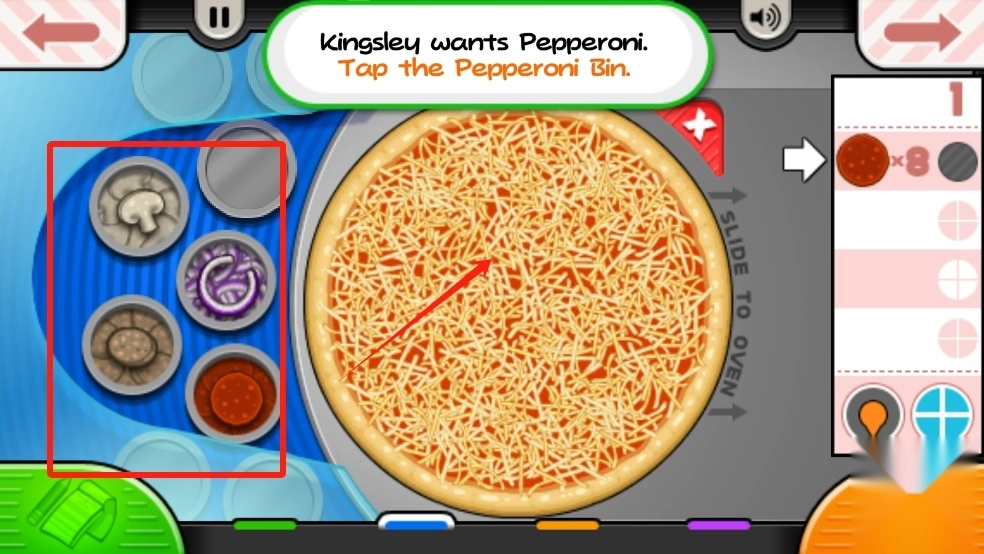 1、点击这里进入厨房制作披萨,按照顾客的需求来制作。