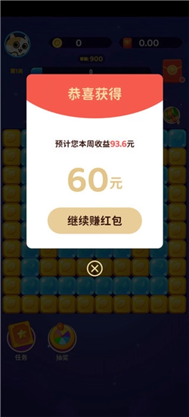 6、随着消除关卡的不断通关,每周通过消除获得的收益会持续增加,并且可以进行提现操作。