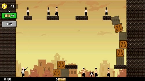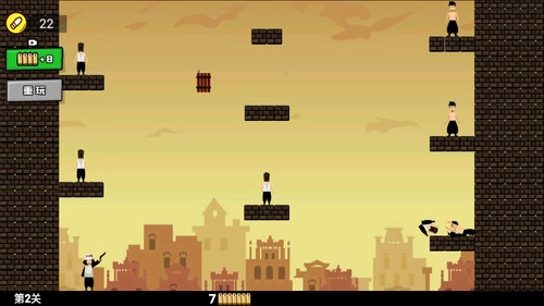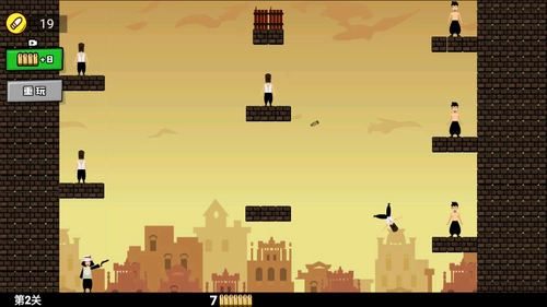 《活到大结局》是一款操作简单的休闲射击小游戏。玩家需用手中的子弹射击关卡里的目标人物,要精准计算子弹的飞行轨迹,保证能准确命中目标。由于子弹数量有限,使用时需谨慎。游戏内设有丰富的场景道具和机关,合理利用这些元素,才能追求完美通关。