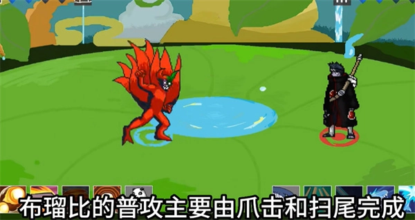 首先这个布瑠比一旦进入游戏就会尾兽化,1a爪击,2a旋转扫尾,3a砸地并在目标处召唤两个大爪子,4a起跳后翻转,5a从空中重抓砸下